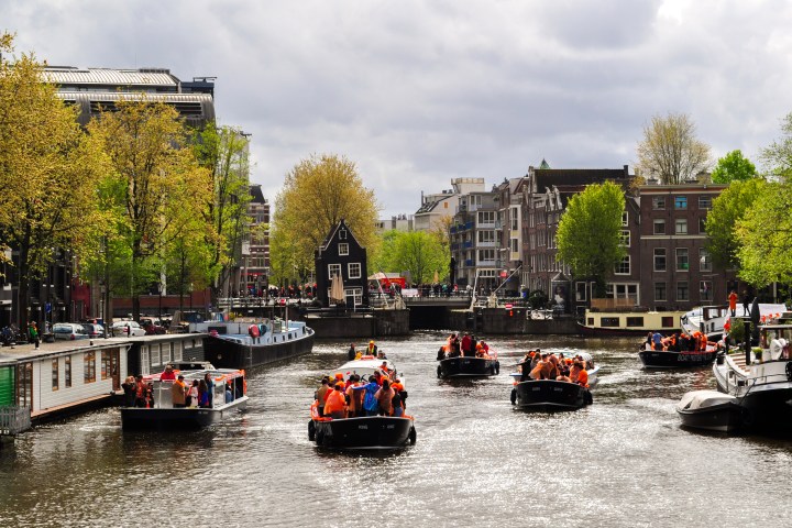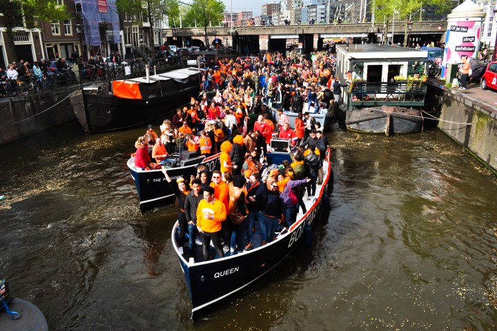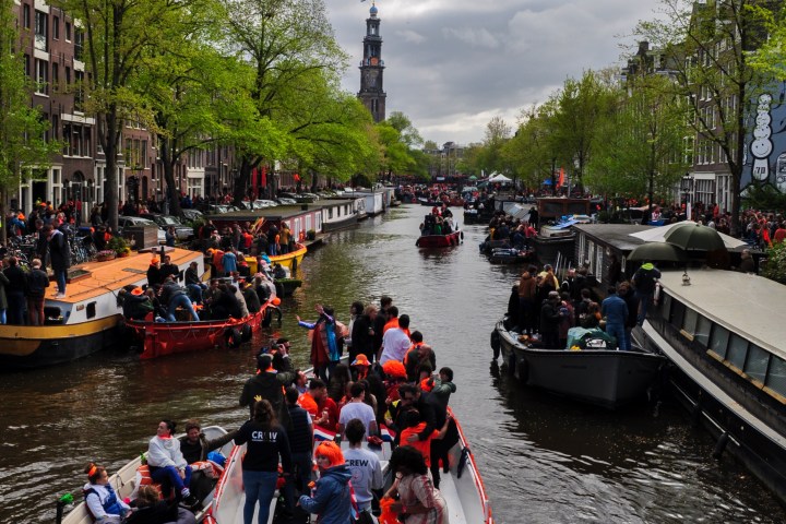 HOP-ON Königstag 2024: in der Nähe des Waterloo-Platzes in Amsterdam. Dies wird bei der Buchung bestätigt.