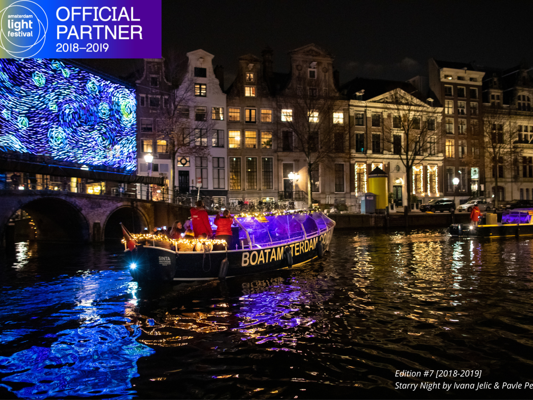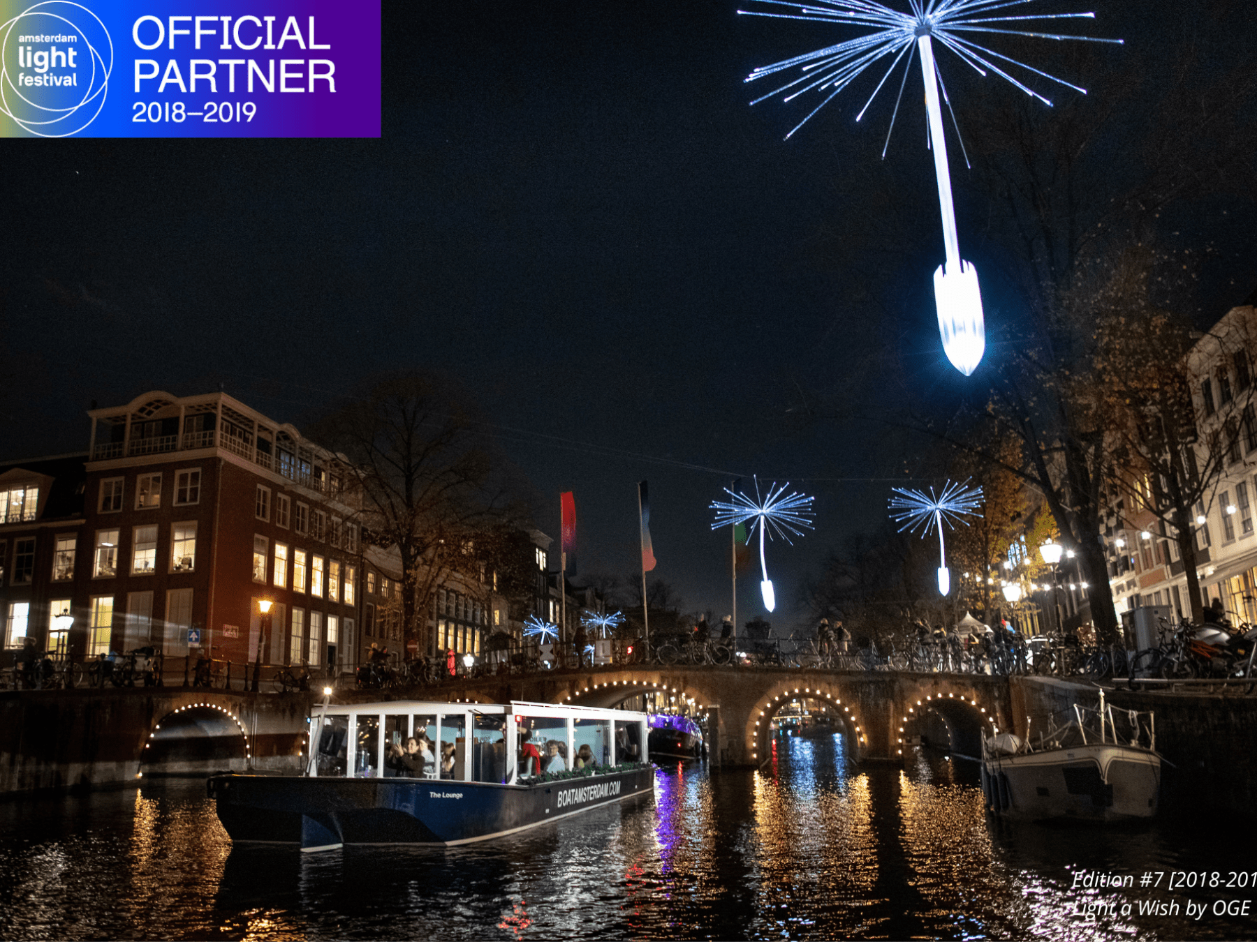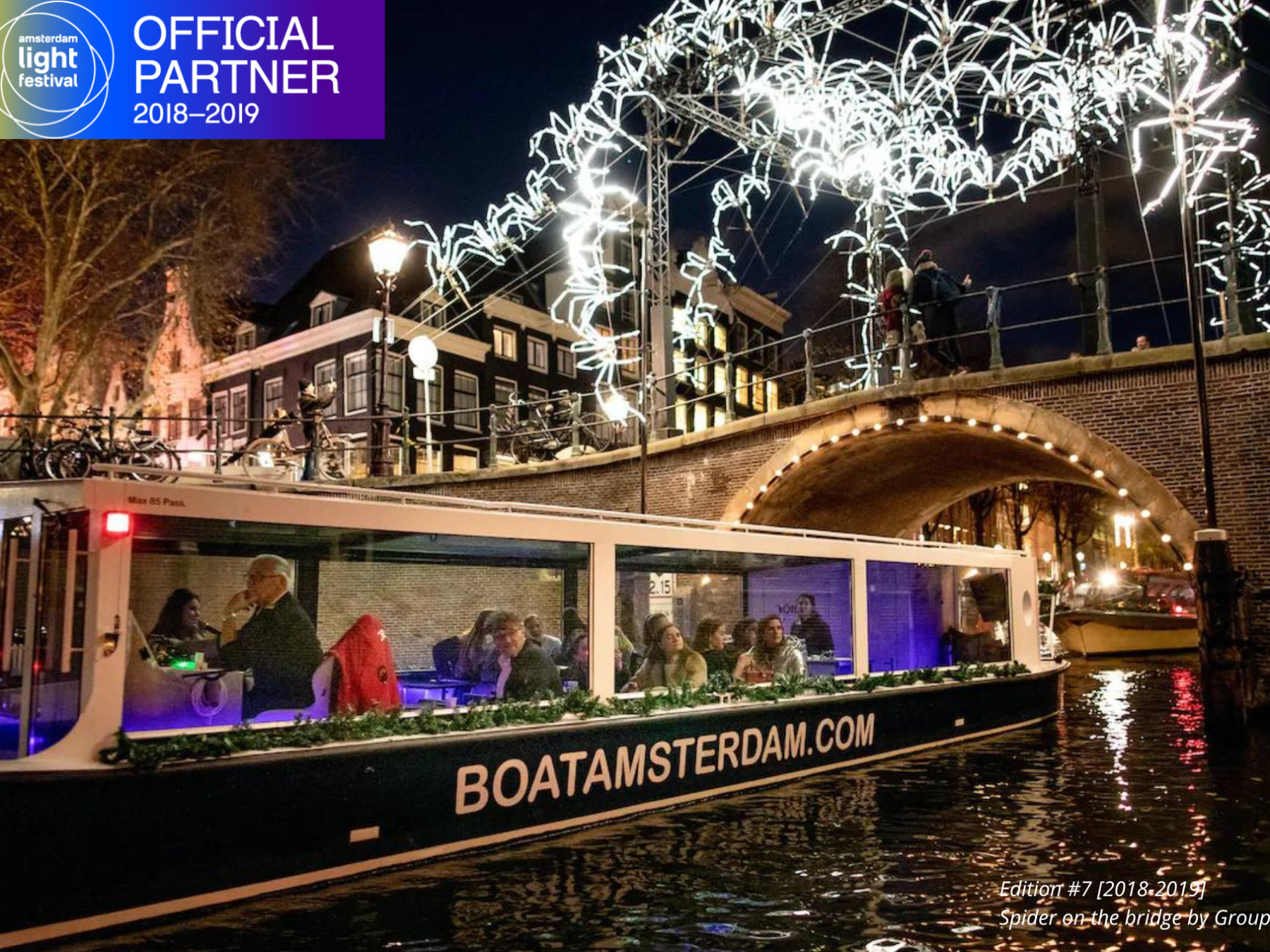 During the Amsterdam Light Festival, over 20 artworks will be showcased in the city of Amsterdam. These are designed and developed by artists and designers, who have worked on these for months to get them to the designated location during the festival. Since the Dutch winters are infamous for their turbulent weather conditions, the maintenance of these artworks is one of the key priorities of the Amsterdam Light Festival organization. Hence, the shipping companies that are Official Partner of the Amsterdam Light Festival pay an Amsterdam Light Festival contribution per guest for the maintenance of these artworks to the organization of the event. By means of these contributions, the organization can ensure the quality and maintenance of the artworks in order for us to offer you a high-quality cruise: in light of service, personal attention and quality of the artworks of the Amsterdam Light Festival.