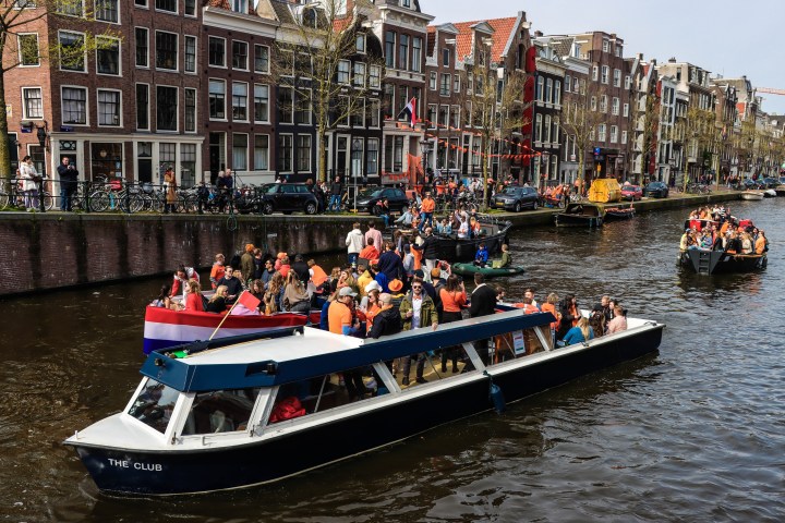 - 1.5 hrs or 4 hrs open boat cruise through Amsterdam’s lively King’s Day celebrations on the canals