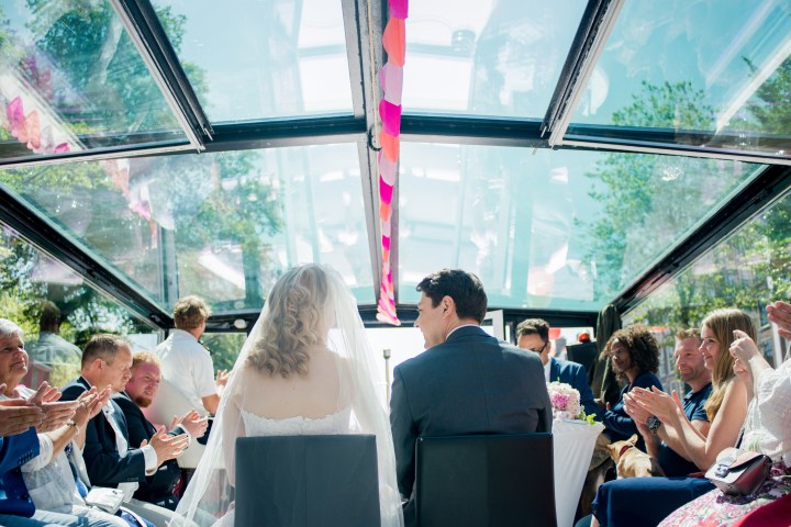 The Lounge is gekeurd tot officiële trouwlocatie in gemeente Amsterdam. Dat betekent dat jullie elkaar aan boord het ja-woord kunnen geven! De ambtenaar van de Burgerlijke Stand komt dan aan boord om het huwelijk te voltrekken. Daarnaast is het natuurlijk ook mogelijk dat The Lounge jullie naar jullie trouwlocatie vervoert of jullie oppikken na de ceremonie om al varend op de grachten het glas te heffen.